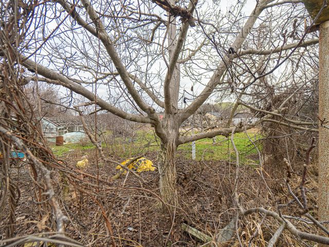 На участке растут старые плодовые деревья.