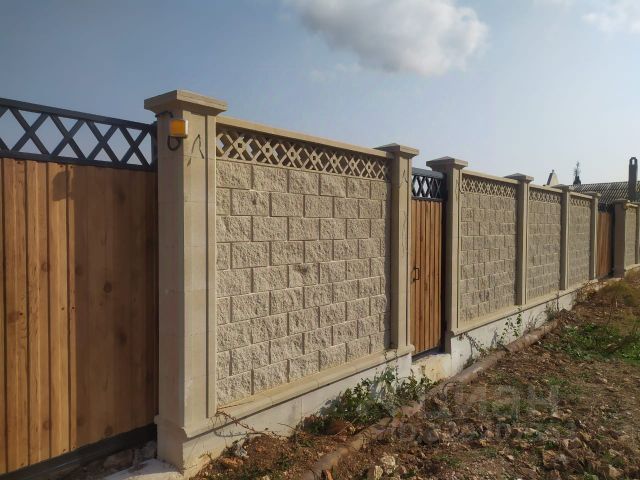 Юго-западная и юго-восточные стороны ограждения будут из французского камня по долговечным монолитным ж.б. фундаменту и колоннам.