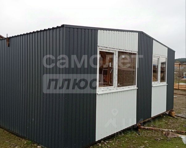 Однокомнатный садовый дом размером 5х4 метра и два подсобных помещения для хранения стройматериалов и инвентаря.