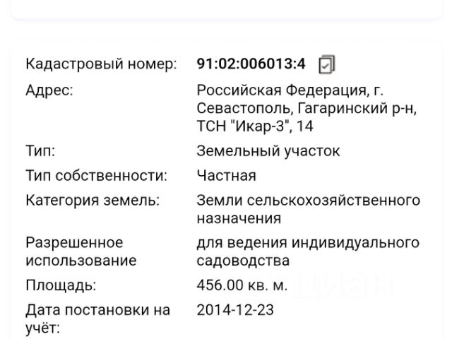 Продается земельный участок площадью 6,2 сотки в географическом центре г. Севастополя, в одном из самых перспективных районов. Участок ровный, без уклона, правильной прямоугольной формы. На участке стоит дачный домик. Подъезд к участку бетонирован. Электричество по границе, водоснабжение круглогодичное. Есть возможность сделать скважину. Газовая труба в 40 метрах от участка. Соседи живут круглогодично. Кооператив активно застраивается. Расположение очень удобное, что позволяет за 15 - 20 минут попасть в любой район города. До центра 10 - 15 минут на автомобиле. Так же в 5 - 10 минутах на авто, расположен УютСтрой, ТЦ Муссон, Лаванда, ЦУМ, Авторынок, СтудГородок, школы, детские сады. В шаговой доступности находится остановка общественного транспорта. Транспорт ходит круглогодично и без перебоев. Отличный вариант для круглогодичного проживания или для инвестиций с перспективой дальнейшей продажи. Так же в продаже имеются другие участки по всему Севастополю с возможностью покупки их по льготной ипотеки и возможностью постройки так же по льготной ипотеке на выбранном вами участке дома вашей мечты. На сегодняшний день - это лучшее предложение на рынке для покупки участка и постройки на нем дома. Наша компания поможет одобрить и оформить ИПОТЕКУ на самых выгодных для вас условиях. Звоните и мы проконсультируем вас по условиям сотрудничества. Успей стать счастливым обладателем недвижимости на черноморском побережье в городе герое Севастополе. МЫ ГАРАНТИРУЕМ ФИНАНСОВУЮ БЕЗОПАСНОСТЬ ДЛЯ НАШИХ КЛИЕНТОВ. Полное юридическое сопровождение сделки. Высокий шанс одобрения ипотеки. Звоните, с удовольствием ответим на ваши вопросы! Код пользователя: 81133 Номер в базе: 10821201