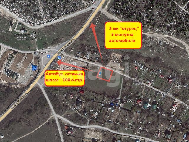 Земельный участок находится в СНТ Электрон-2, до остановки Царское село на Фиоленте всего 3 минуты пешком (300 метров), до остановки Створ 5-7 минут (600 метров, Т-образный перекрёсток). Время подхода к берегу моря 10-15 минут, со спуском до пляжа Царское село 20-25 минут (~1,8 км через СНТ Фиолент), до Монастырского шоссе ~180 метров.