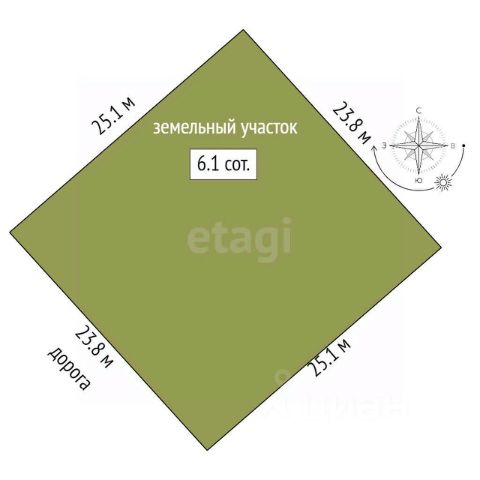 Размеры сторон участка: 32,07 м., 31,12 м., 20,96 м., 24,55м.