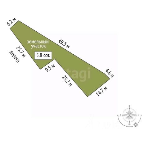 - Площадь: 6,1 сотки.