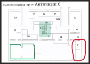 Сдаваемая площадь помечена красным на плане и на фото.
