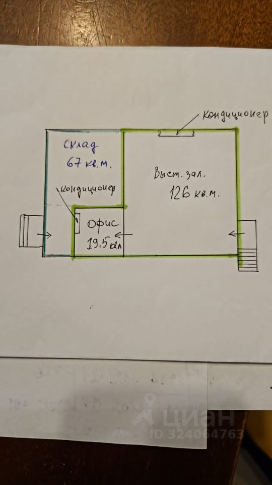 - помещение 126 кв.м+офис 19,5 кв. м = 145,5 кв.м с отдельным входом с фасада