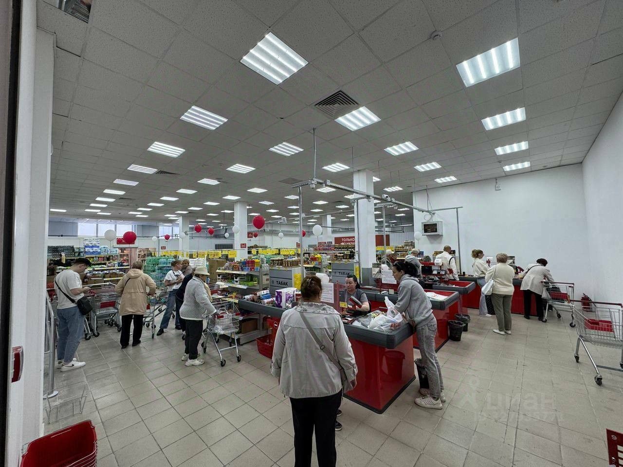 ВАЖНО: основную часть первого этажа занимает расчетный центр "Городские инновации" и продуктовый гипермаркет "Народный амбар" - данные организации генерируют высокий трафик комплекса. Остальные помещения арендованы под торговлю непродовольственными товарами (двери, сантехника, канцтовары и пр.), а также офисами строительных, обслуживающих и прочих организаций, банком РНКБ.