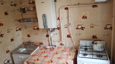 В квартире пластиковые окна, газовая колонка (горячая вода), отопление центральное, есть стиральная машинка, холодильник, газовая плита с духовкой, раскладывающийся диван, мебель. Застекленный балкон.