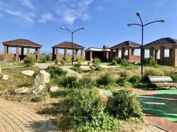 На территории комплекса есть ресторан (работает в летний период) кофейня, беседки, видовые качели для фотосессии и селфи, детская площадка, зона барбекю, спортивная площадка, смотровая площадка Мыса Фиолент для встречи закатов в 30 метрах. Магнитный ключик от калитки на связке с ключами.