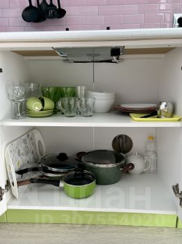 - Оборудованна полноценная кухня (варочная панель, вытяжка, СВЧ печь, чайник электрический, тостер, холодильник, мойка, шкафы, посуда)