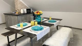 - Кухня-студия с раскладным диваном и большим обеденным столом;