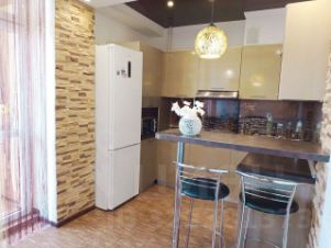 Бытовую технику, кондиционер, двухкамерный холодильник, газовую поверхность,СВЧ печь, смарт ТВ, стиральную-автомат, утюг, гладильную доску, фен.