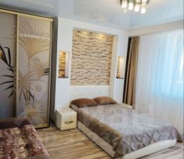 Просторную застекленную лоджию, как отдельную комнату, с диваном- кроватью.