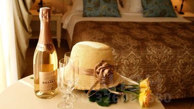 Номер для двоих, выдержанный в светлых тонах. Мебель из натурального дерева ручной работы и "венецианская" штукатурка стен создают интерьер в греческом стиле. Современный санузел с душевой кабиной и полный набор мини-парфюмерии. Гипоаллергенное постельное белье и махровые полотенца производства Турции. В каждом номере гостям предлагаются халат и тапочки. Оснащение номера: телевизор, спутниковое телевидение, Wi-Fi, телефон, холодильник, система климат-контроля, светильник, настольные лампы, фен, система безопасности (Противопожарная сигнализация), электронные замки, душевая кабина, банные принадлежности, халаты, банные полотенца, тапочки, гигиенические средства, косметические средства, унитаз, раковина, гипоаллергенное белье, ортопедический матрас, тумбы, стулья, шкаф для одежды, вешалки, журнальный столик, багажная тумба, эксклюзивная мебель (ясень, ручная работа), звуконепроницаемые стены и окна, мини-бар, чайный набор, информационная карта, сейф, чайник, питьевая вода, шоколадки.