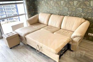 Диван кожаный с альтанкой и банкеткой, телевизор.