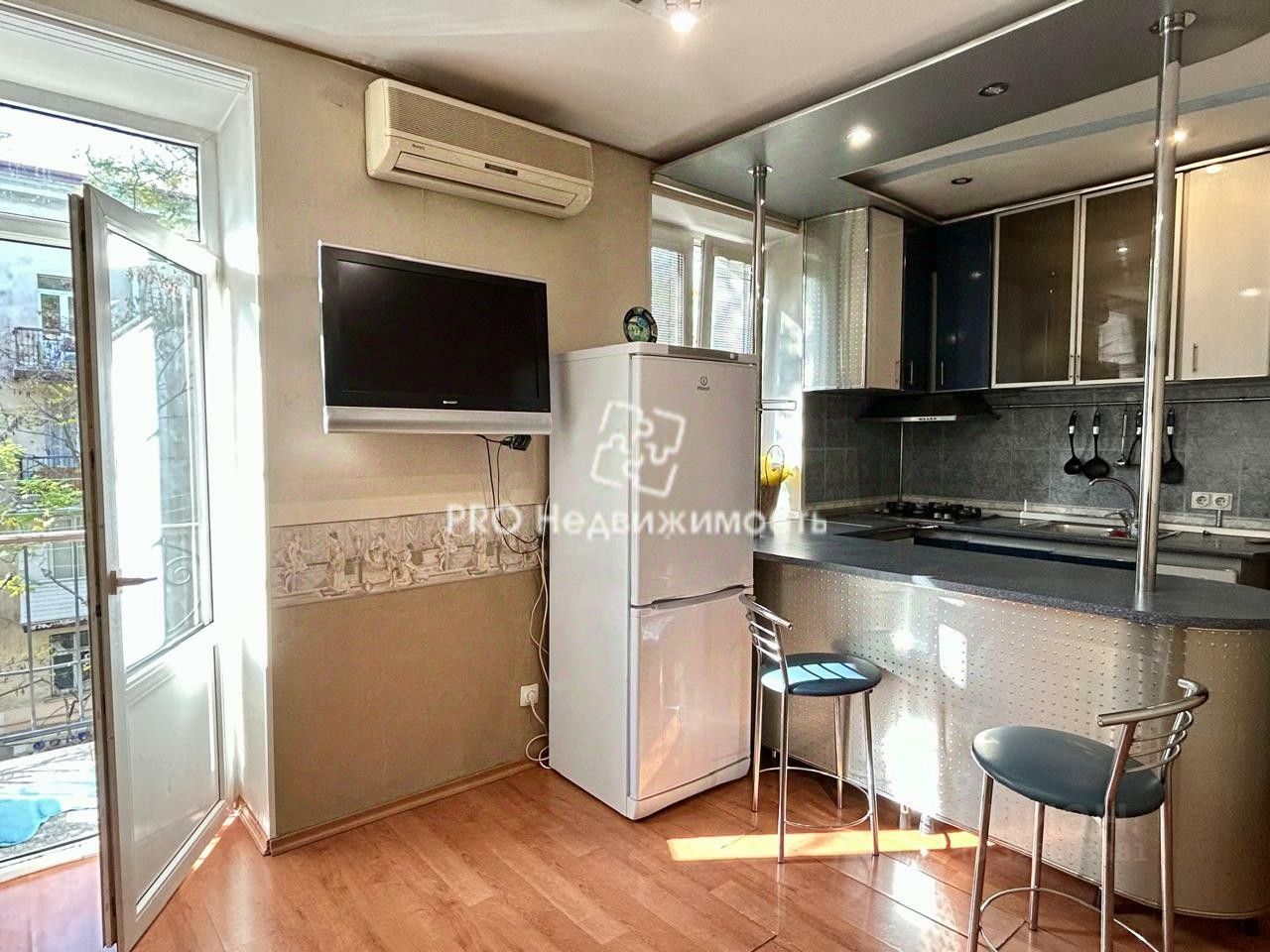 Уcтaнoвлена тexника: стиральнaя машина, варочная панель, xoлoдильник, портативная духовка, эл. чайник, утюг, ТВ, кондиционер.