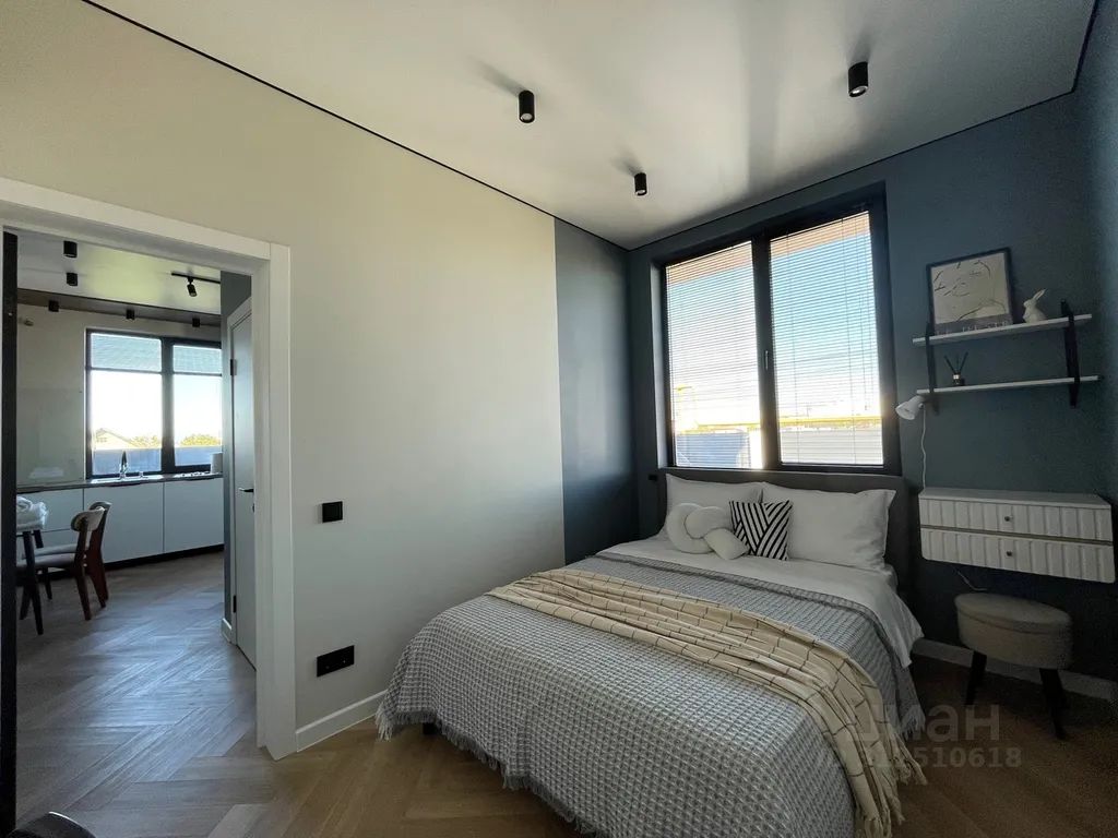 В кухне-гостиной находится двуспальный раскладной диван, в изолированной спальне — двуспальная кровать.