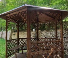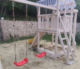 На территории есть две комфортные беседки с мангалом и барбекю, детская площадка.