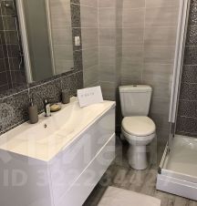 Первый этаж: кухня гостиная оснащённая всей необходимой бытовой техникой( посудомоечная машина, встроенный холодильник, варочная поверхность, духовой шкаф, встроенный фильтр воды, электрочайник) туалет с душевой и стиральной машиной, терраса.