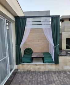 В доме есть всё необходимое для комфортной и спокойной жизни. Кухня-гостиная, встроенная бытовая техника на кухне, две спальни с очень удобными кроватями, большая прихожая, санузел, душевая, сауна, небольшой бассейн. 2 кондиционера. На территории большая стоянка для авто, ворота автоматические, видеонаблюдение, зона отдыха, барбекю, тандыр.
