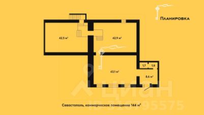 -Три просторных помещения по 43 м².