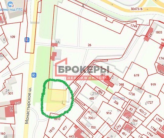 Земельный участок для коммерческой деятельности, расположенный на первой линии Монастырского шоссе.