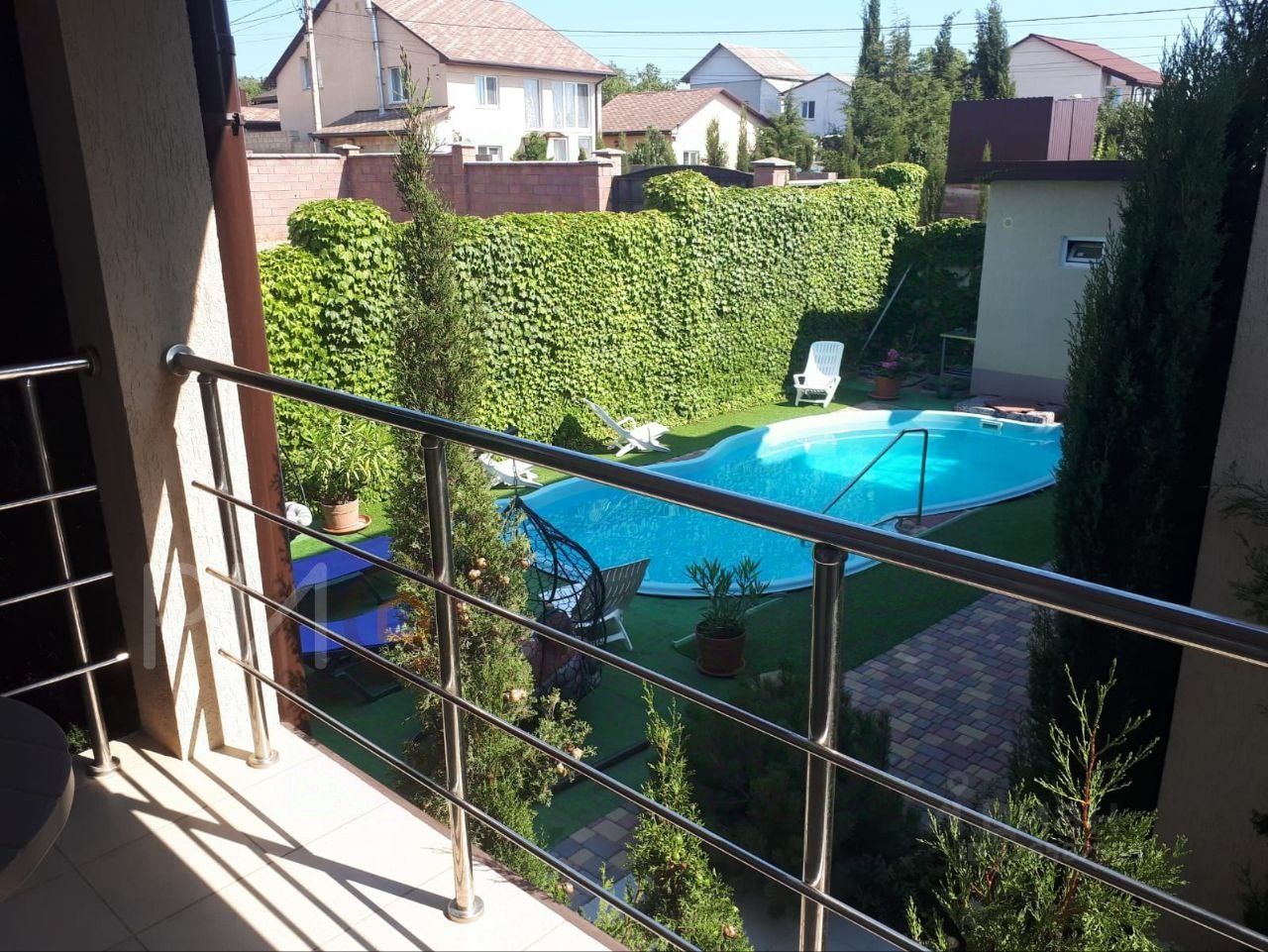 На территории есть шикарный бассейн и зона барбекю.