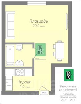 Апартаменты общей площадью 28 кв.м расположены на 5 этаже.