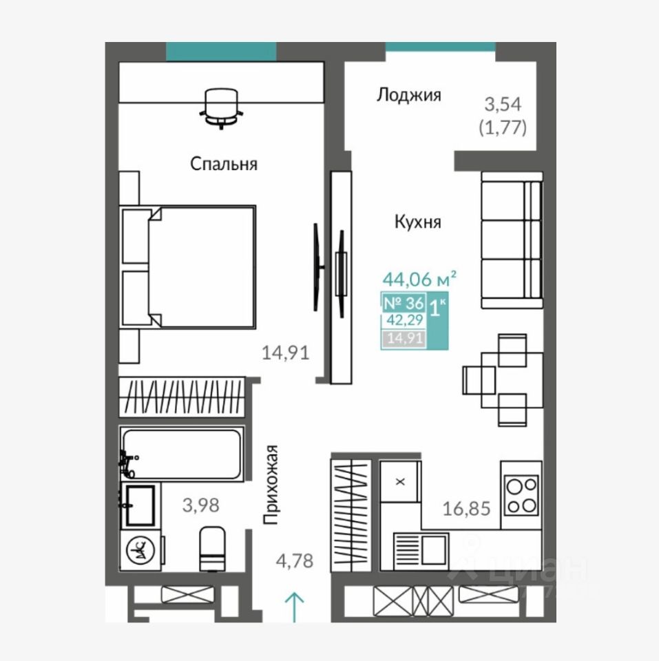Предлагаю к продаже видовую 1-комнатную квартиру.