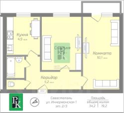 -Общая площадь: 34,2 м2