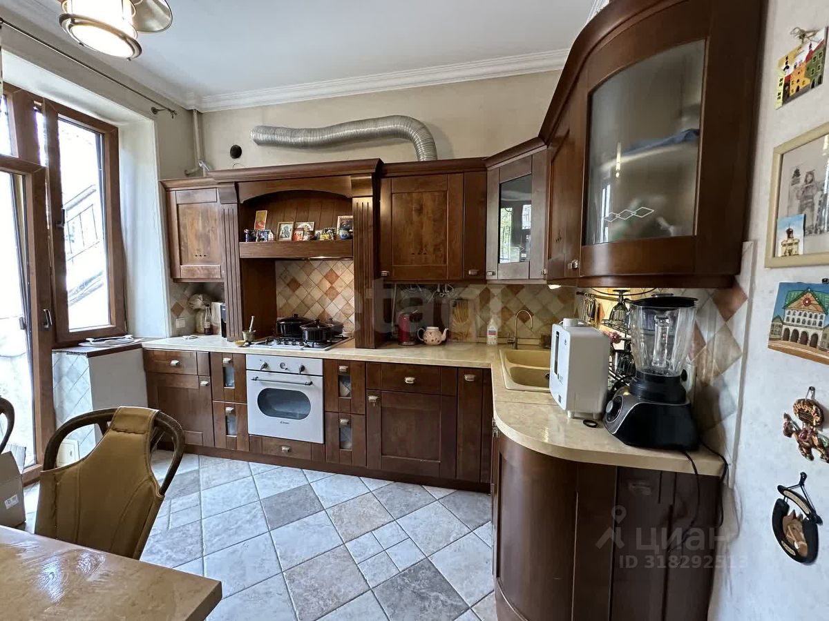 Окна квартиры выходят на обе стороны дома, расположение с одной стороны дома на первом этаже, другая сторона-второй этаж, дом расположен на горке. Просторные 4 комнаты, атмосферный балкон. Площадь квартиры 96.8 м2: кухня-9 м2, комнаты: 17.7, 17.4, 15.6, 15 м2, санузел совмещенный 4 м2, прихожая-10 м2, балкон-9 м2, высота потолков-2.95.