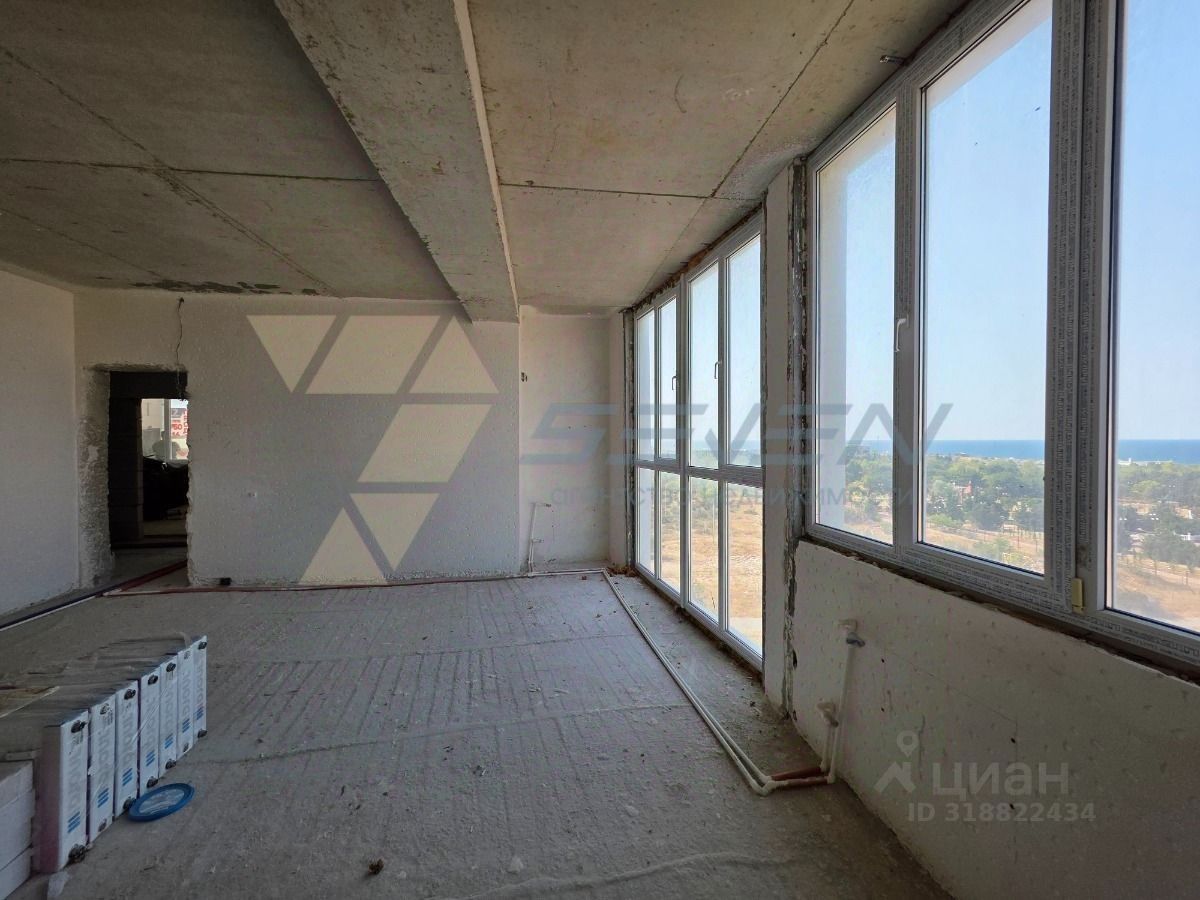 В квартире панорамное остекление, во всех помещениях с видом на море, Парк Победы и бухту Омегу.