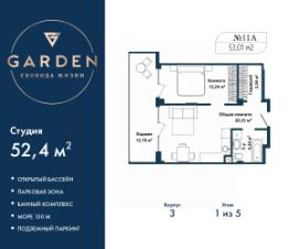 Двухкомнатные апартаменты с европланировкой с отделкой в жилом комплексе бизнес-класса "Garden". Общая площадь: 52.4 кв.м., жилые комнаты 10.33 и 12.24 кв.м., общая площадь гостиной-столовой с кухонной зоной: 20.33 кв.м. Комнаты изолированные, все окна выходят на одну сторону. В квартире одна лоджия, один совмещенный санузел. Высота потолков 2.7 м. #z6zuD5