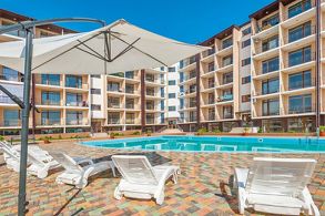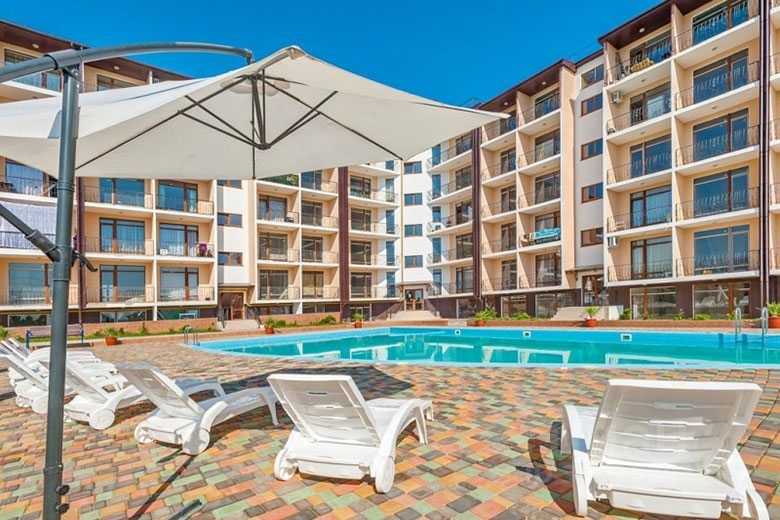 Вся мебель и техника и продаются вместе с апартаментами. Дизайнерский капитальный ремонт сделан 2 года назад. Окна выходят во двор и на улицу, с прекрасным видом на море с двух сторон. Закрытая охраняемая территория, парковочные места вокруг комплекса, во дворе есть бассейн и новая детская площадка, также на территории отеля есть спа комплекс, тренажерный зал и супермаркет. В комплексе установлена автономная газовая котельная, которая обеспечивает бесперебойную подачу горячей воды и отопления. До моря и пляжной зоны всего 3 минуты пешком, рядом есть новая государственная школа, детский сад и новый детский многофункциональный центр.
