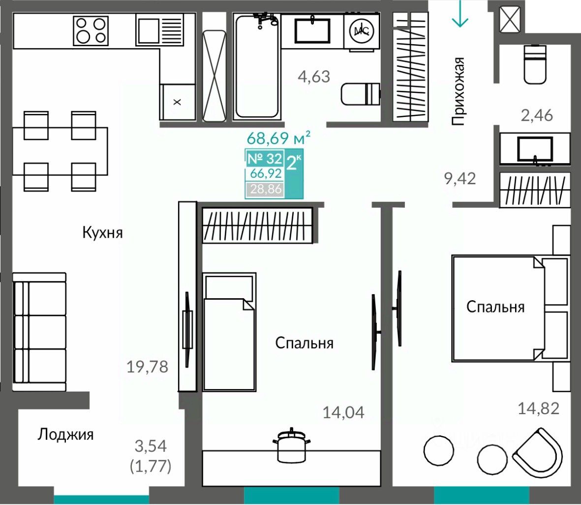 66,92 м²