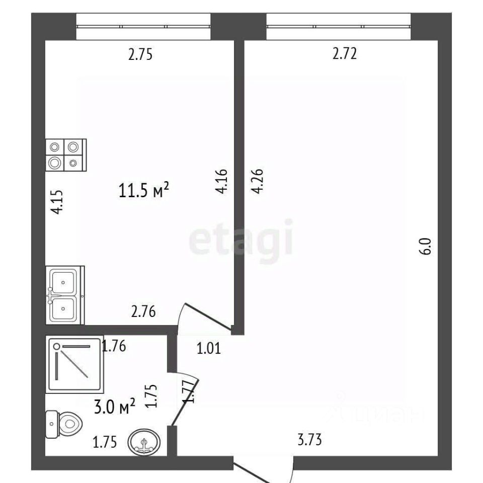 • Кухня: 11,5 м²