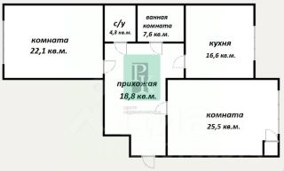 Двухкомнатная крупногабаритная квартира 94,5 м2, на 3/10 этаже дома, с просторной кухней 16 м2. Расположена в г. Севастополь, Гагаринский район, пр-кт Античный, д. 64/5