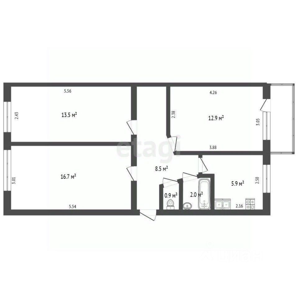 Общая площадь: 61.5 м²