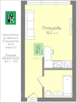 Апартаменты 16,2 м², 1/3 эт. — ремонт, кондиционер, тёплый пол! г. Севастополь, ул. Военных Строителей, д. 12/13