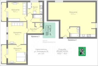 Общая площадь 103 кв. м. Высота потолков 3 м. Просторная прихожая, на первом уровне площадь 52 м2, на мансарде 47.3 м2