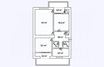 Комнаты: 10.2, 13.1, 17.7 м2.