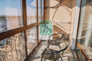 Общая площадь 68,7 м², большая кухня-гостиная 31,5 м², с застекленным балконом 6 м², с которого открывается вид на открытое море мыс Херсонес. Спальная комната 16,5 м² так же с балконом большими и шикарными видами. В каждой комнате кондиционеры. Санузел совмещенный (4 м²,) установлена стиральная и сушильная машина.