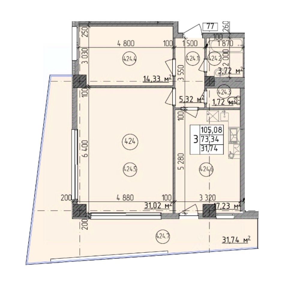 • Высота потолков 3,1 м