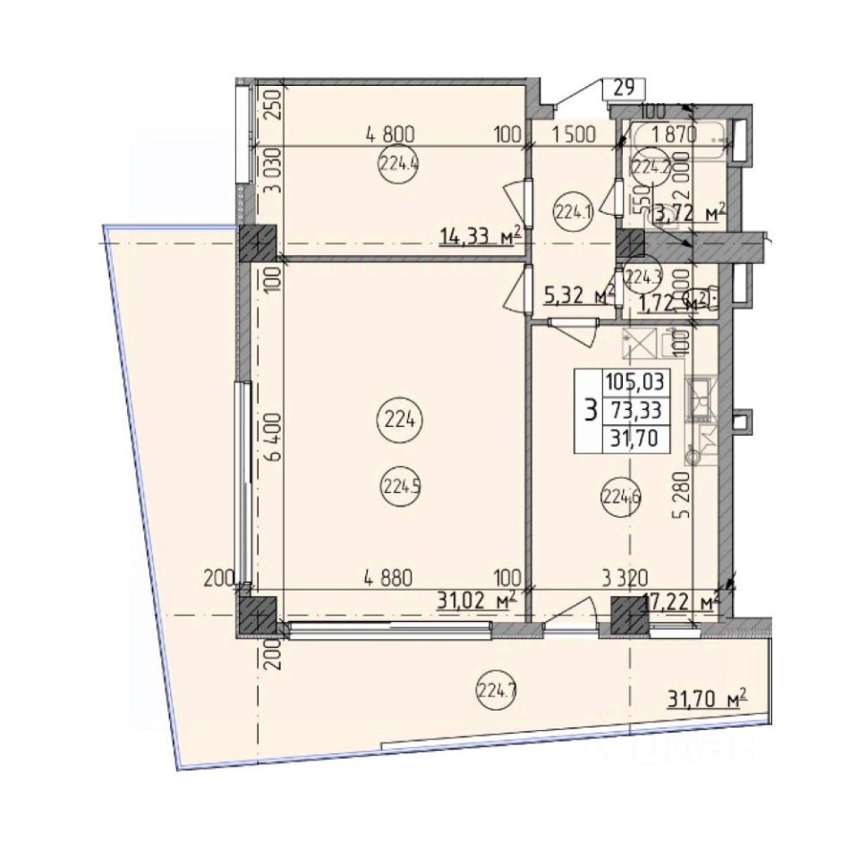 • Высота потолков 3,1 м