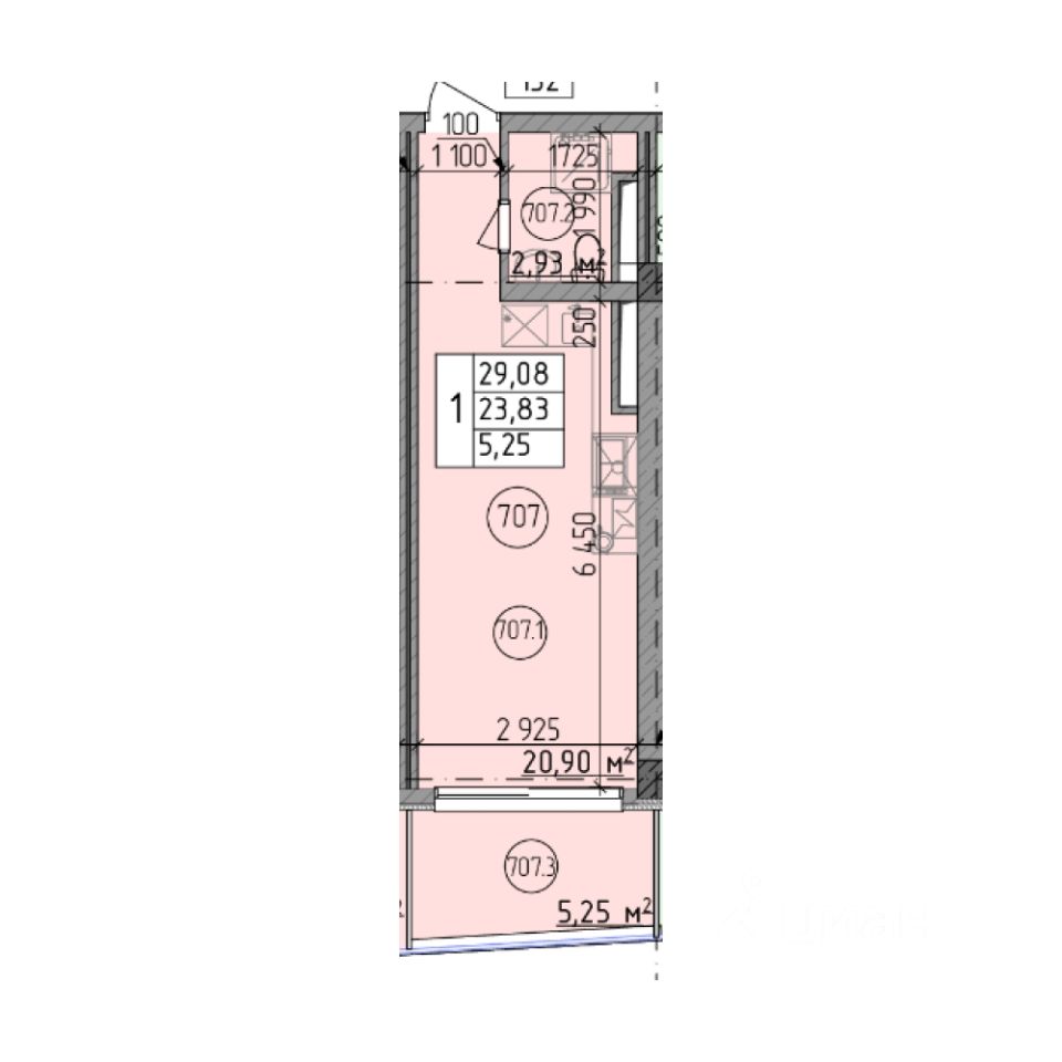 Общая площадь29,08 м²