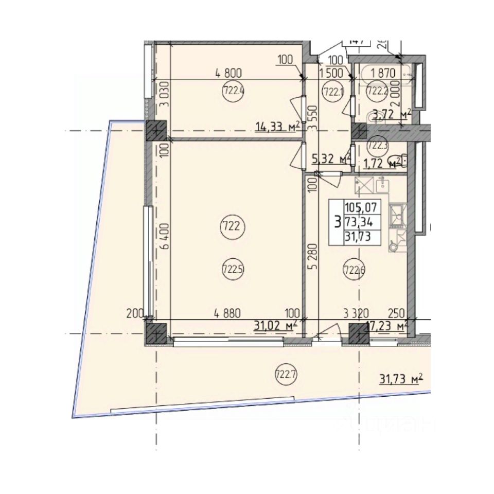 • Высота потолков 3,1 м