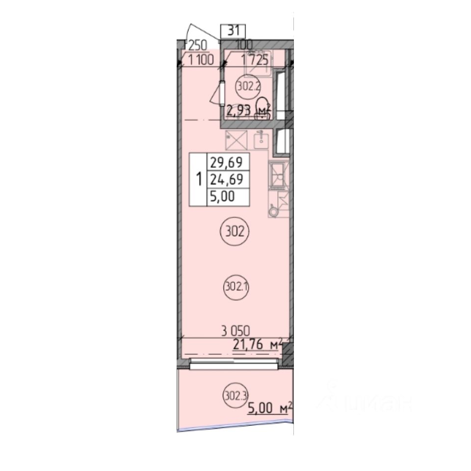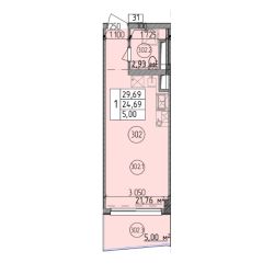Общая площадь29,69 м²