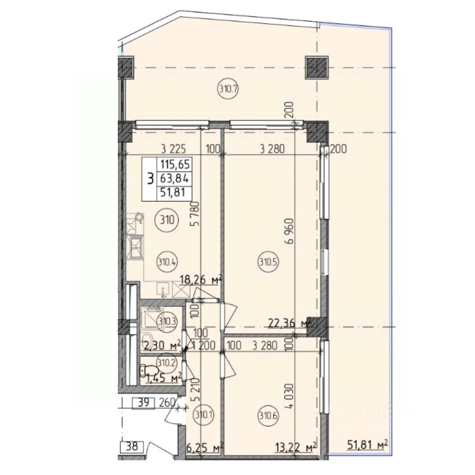 • Высота потолков 3,1 м