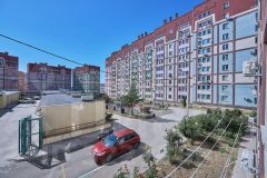 Во дворе есть своё паркоместо за шлагбаумом.