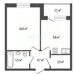 — Площадь кухни: 9.6 м2