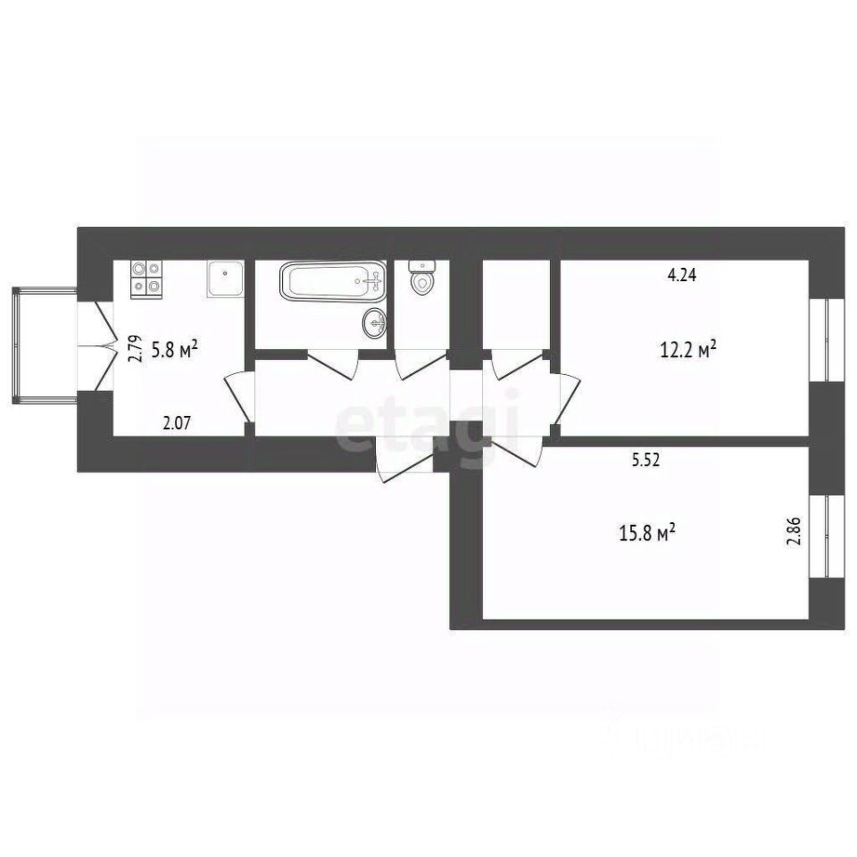 Комната: 15,8 и 12,2 м2